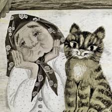 Как у старой бабки Жили-были лапки. Встанет бабка утром рано, Выйдет в погреб за сметаной - Лапки вслед за ней бегут. Всюду бабку стерегут. Сядет бабушка вязать - Лапки рядом с ней опять: Схватят бабушкин клубок И закатят в уголок... Надоели бабке Озорные лапки! Видит бабка - у ворот Умывают лапки рот. Стала бабка ждать гостей, Суп сварила из костей. Ждет гостей, а их все нет. Стынет бабушкин обед. Глядь, а лапки из кастрюли Кость большую утянули. Вот тебе и лапки! Нет покоя бабке. Отчего ж тогда стара Их не гонит со двора? Оттого, что ночью лапки Верно служат старой бабке. Если лапки ночью вскочат, Когти острые поточат, По полу пройдутся - Все мыши разбегутся! Нет мышей у бабки. Вот какие лапки!
